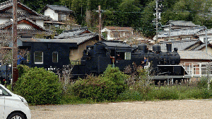 明智駅の交差点で信号待ちしてたら汽笛が聞こえたので"もしや!?"と思って駅前に行ってみたらちょうど機関車が出てきたところだった😊
