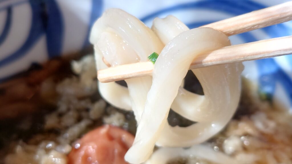 うどんはモチモチ、梅風味の露でさっぱりしたうどんでした😋