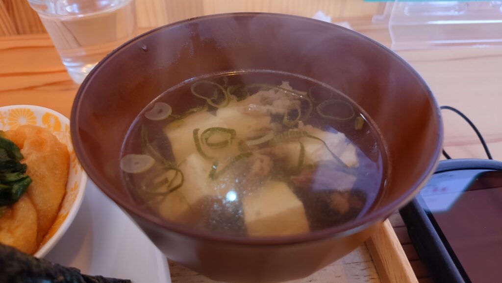モーニングの時間には5分間に合わなかったのでおにぎり定食を注文、おにぎりは注文してから握ってくれるので、出来立てホヤホヤを食べられる。 定食には肉吸いがついてくるのだが、これが口コミ通りで美味い😋 女将さんも素敵な方😍で、おしゃべりしにおにぎりを食べに行くのでも良いかと思った😅